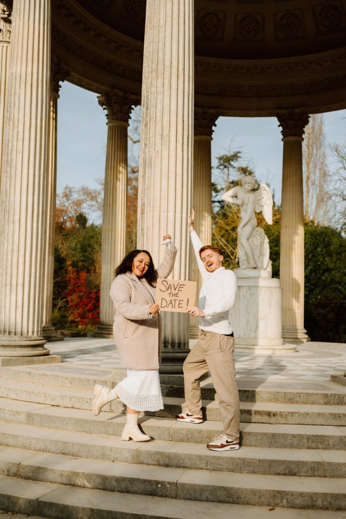 Comme pour toutes les séance engagement, je propose ce petit accessoire (si le lieu choisi s’y prête) et des lunettes coeurs pour ajouter un côté festif aux photos !